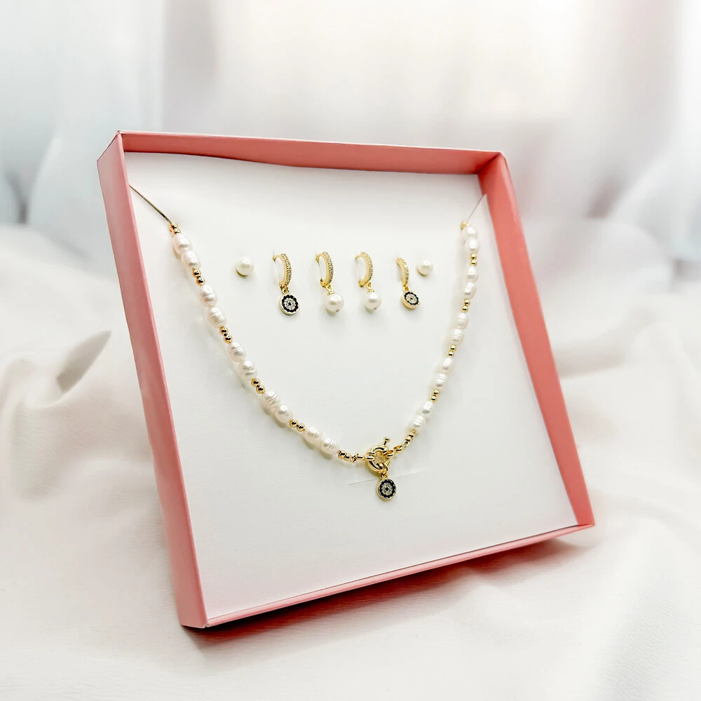 Combinando pérolas e acabamentos dourados, é a escolha ideal para quem ama o clima da praia, mas sem abrir mão da delicadeza.