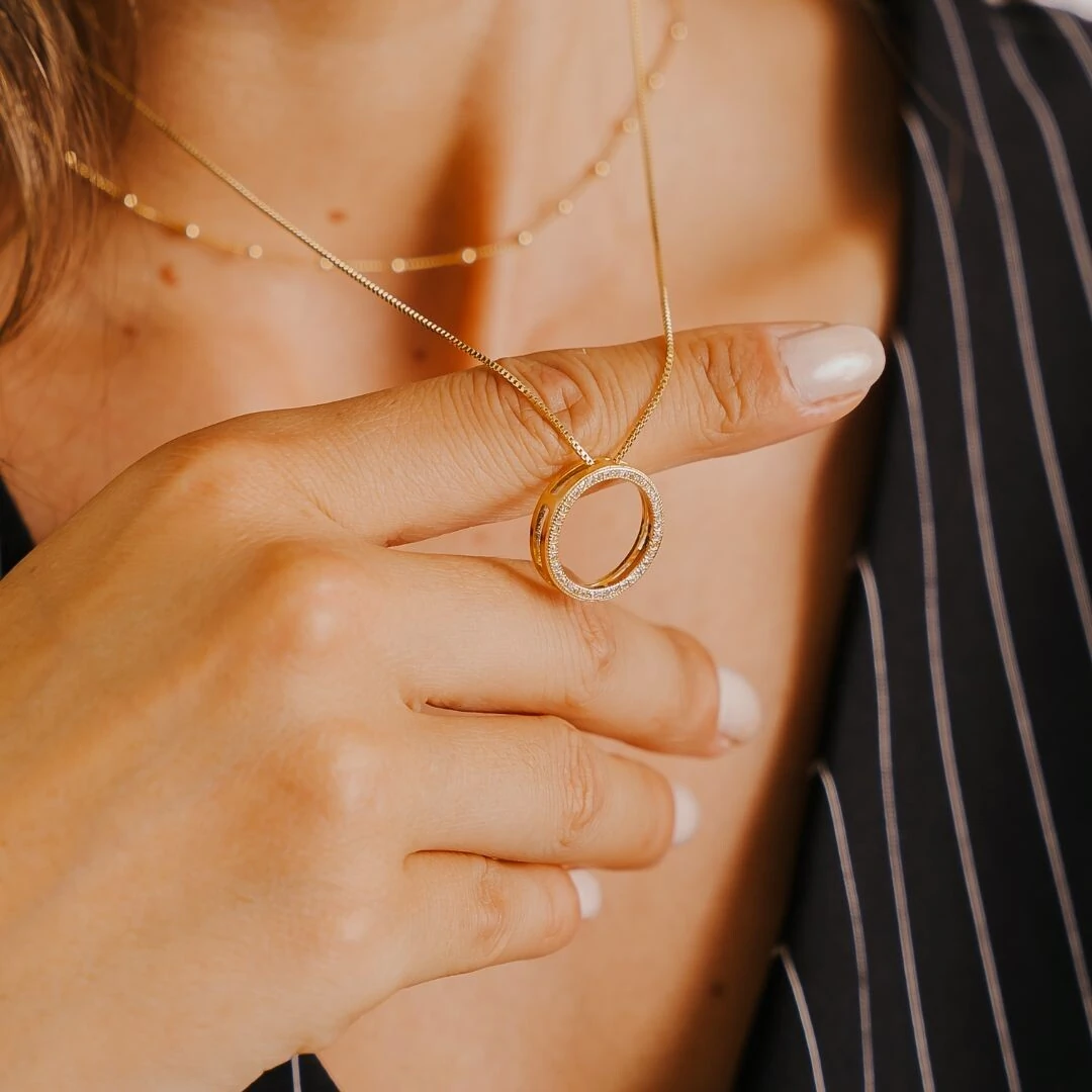 Pingente Aro passante de Micro zircônias Cristais Cravejadas