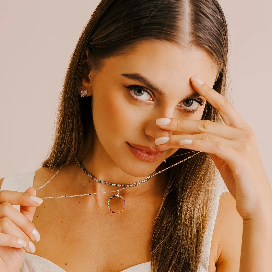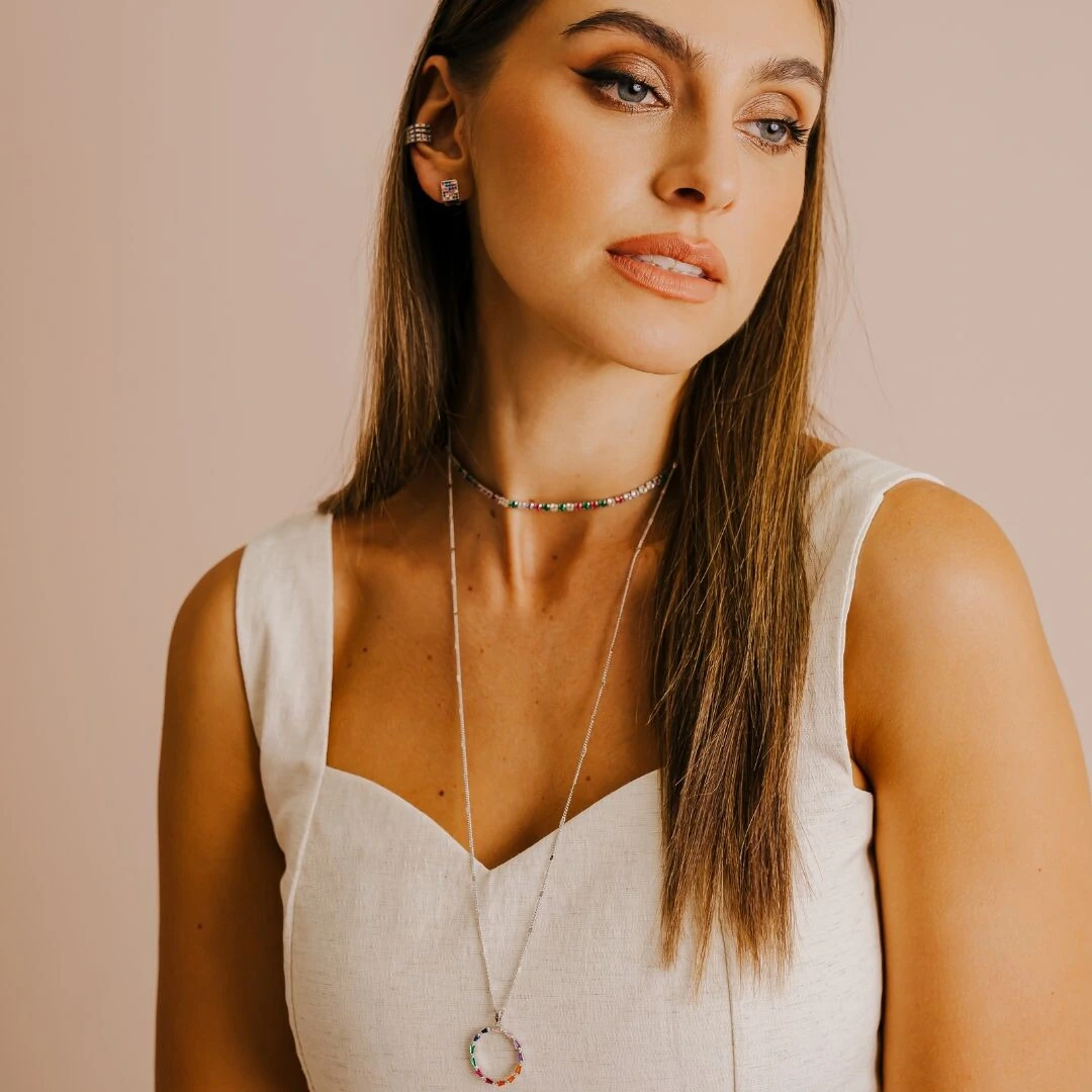 Esse Choker riviera de zircônias coloridas é a escolha certa para brilhar e se destacar, toda deslumbrante em uma ocasião especial, festa ou evento mais formal.