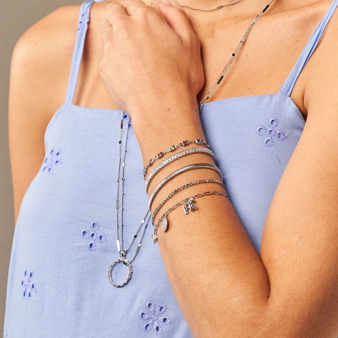 Pulseira Petrolina alegre de cristais quadrados multicor com bordas.