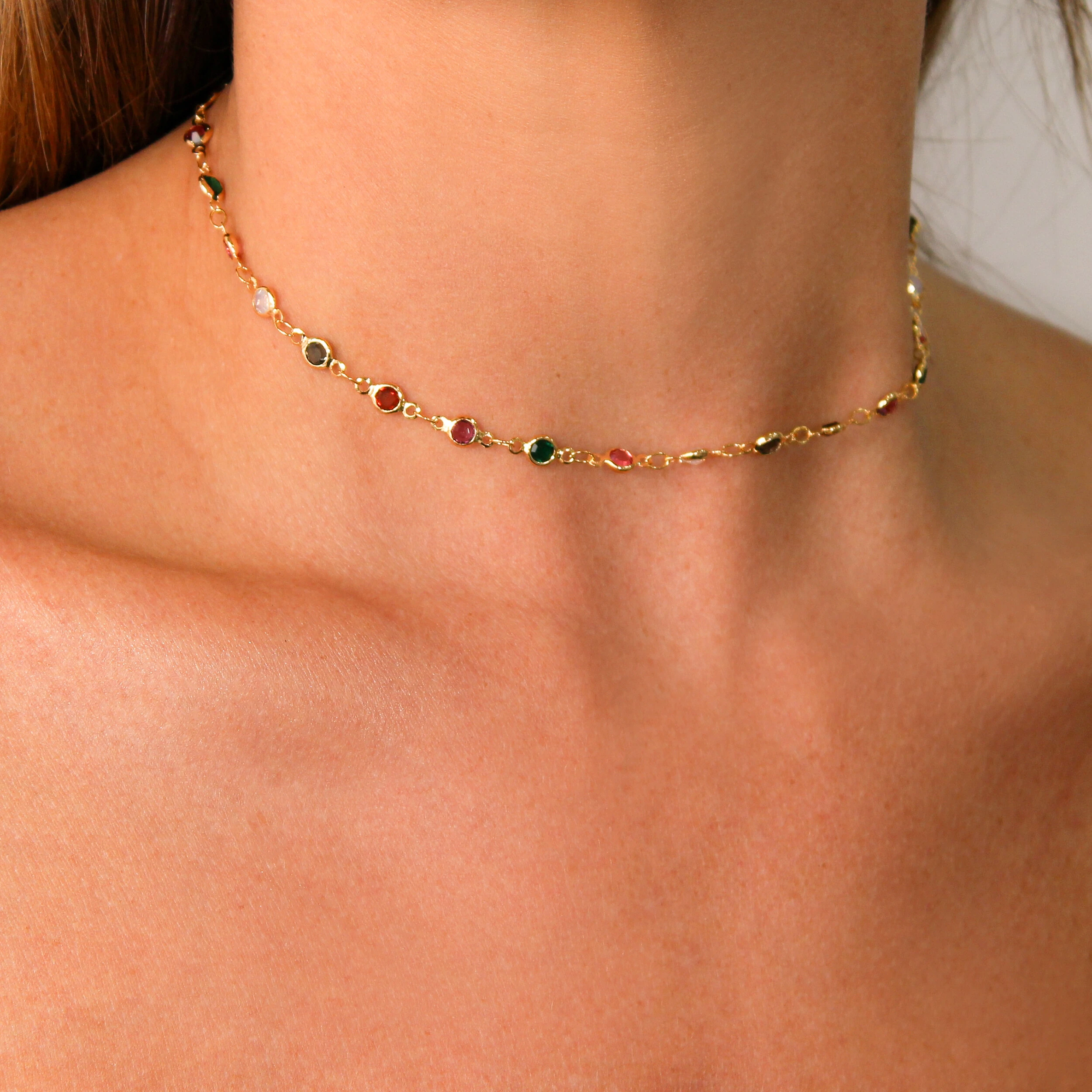 Choker com zircônias coloridas