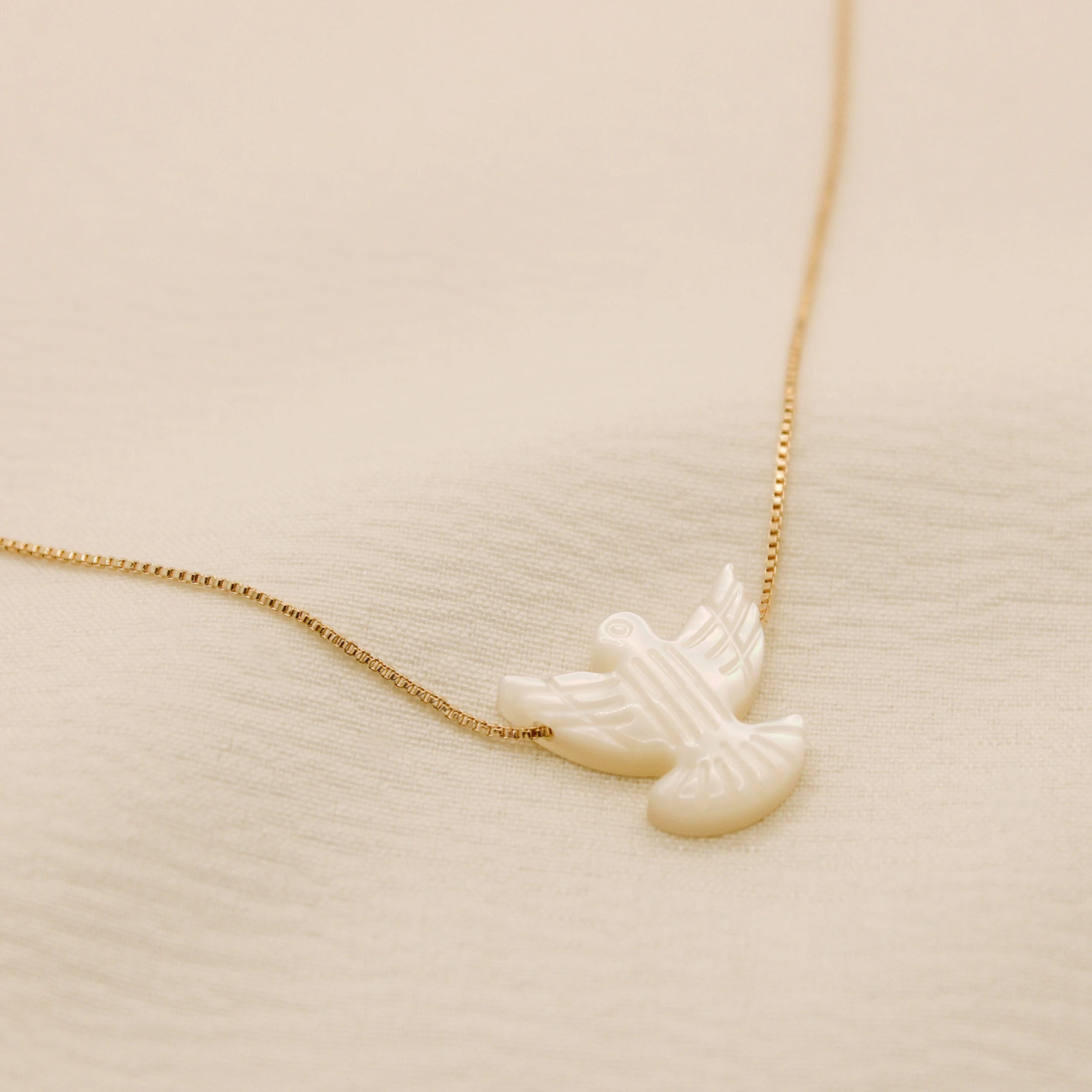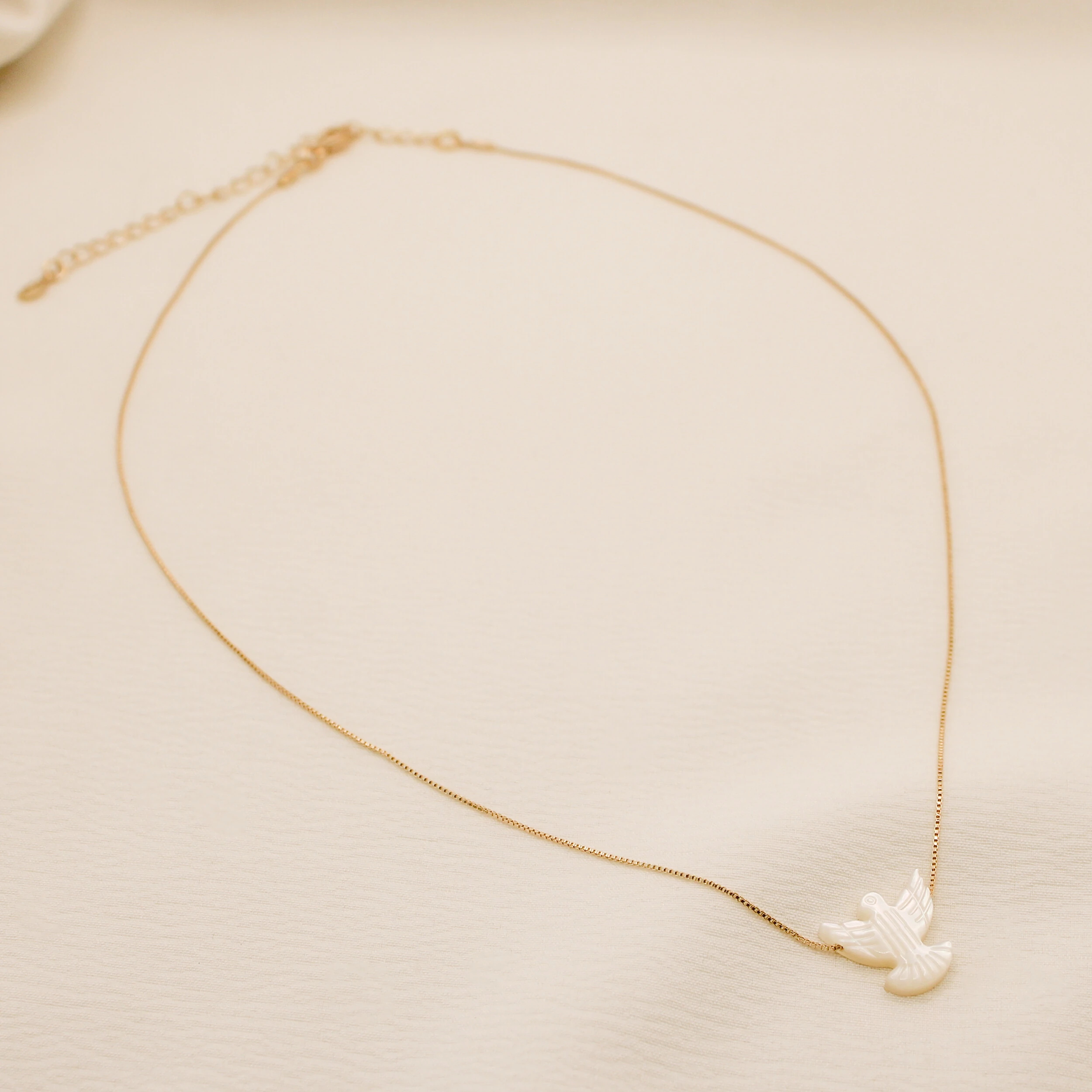 O Colar Espírito Santo é um símbolo de paz e elegância! Com uma delicada pomba em madrepérola, este colar transmite serenidade e sofisticação
