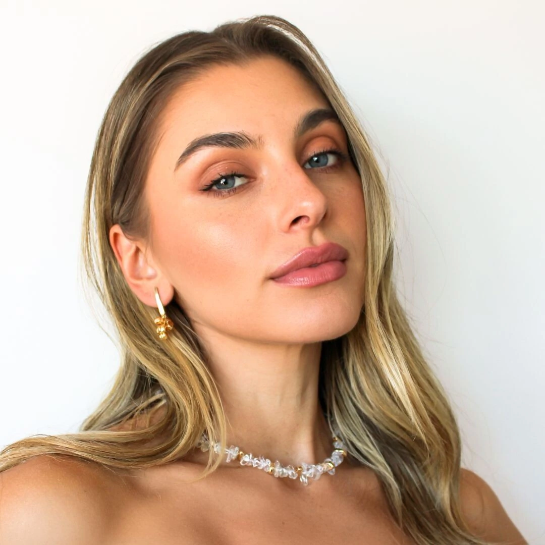 O Colar Santorini traz delicadeza e sofisticação em uma peça única. Seus detalhes em cascalho transparente refletem a luz de forma sutil e elegante, tornando-se o acessório perfeito para quem ama um visual leve, sofisticado e atemporal.
