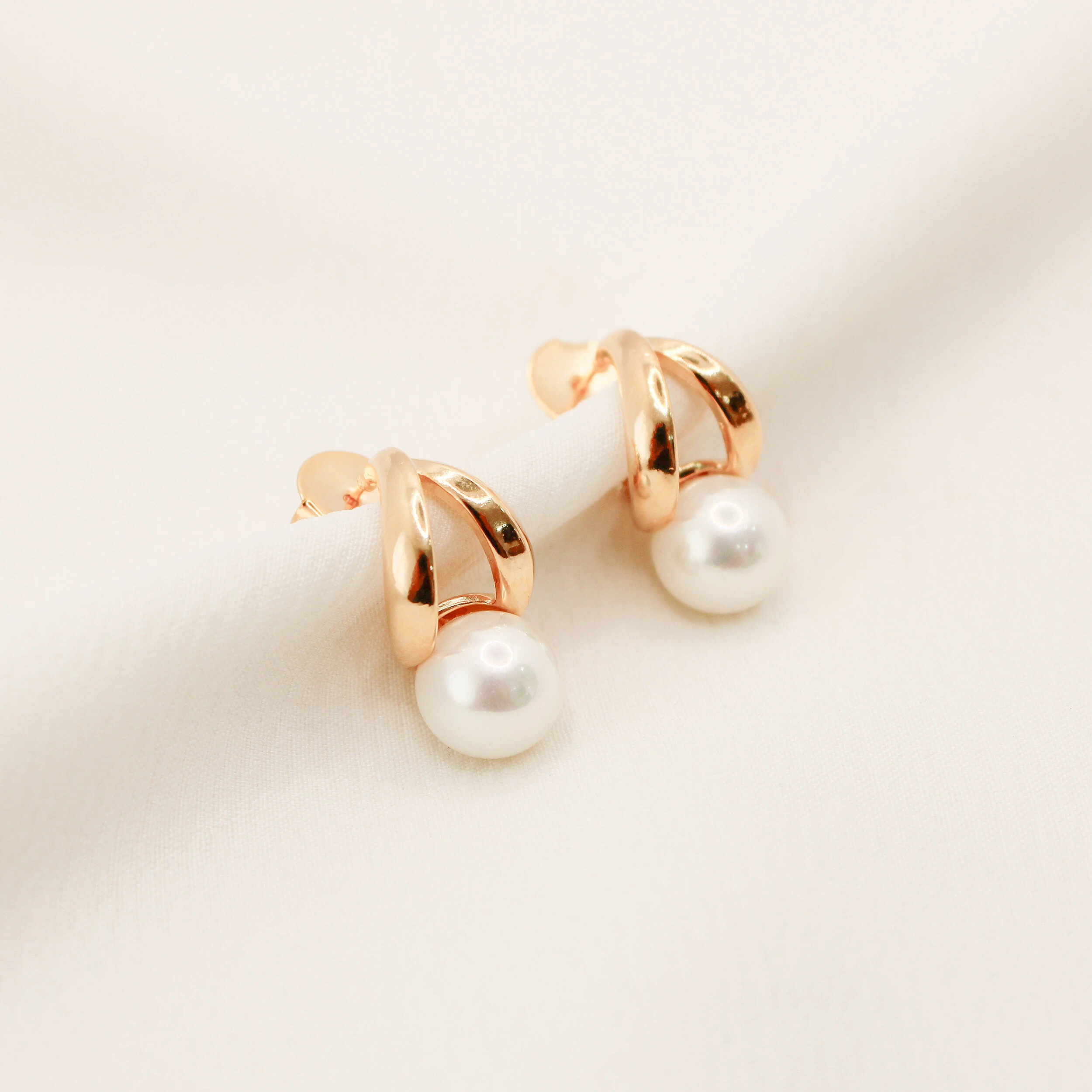 Brinco Vicência Haste Dupla Pérola Suspensa