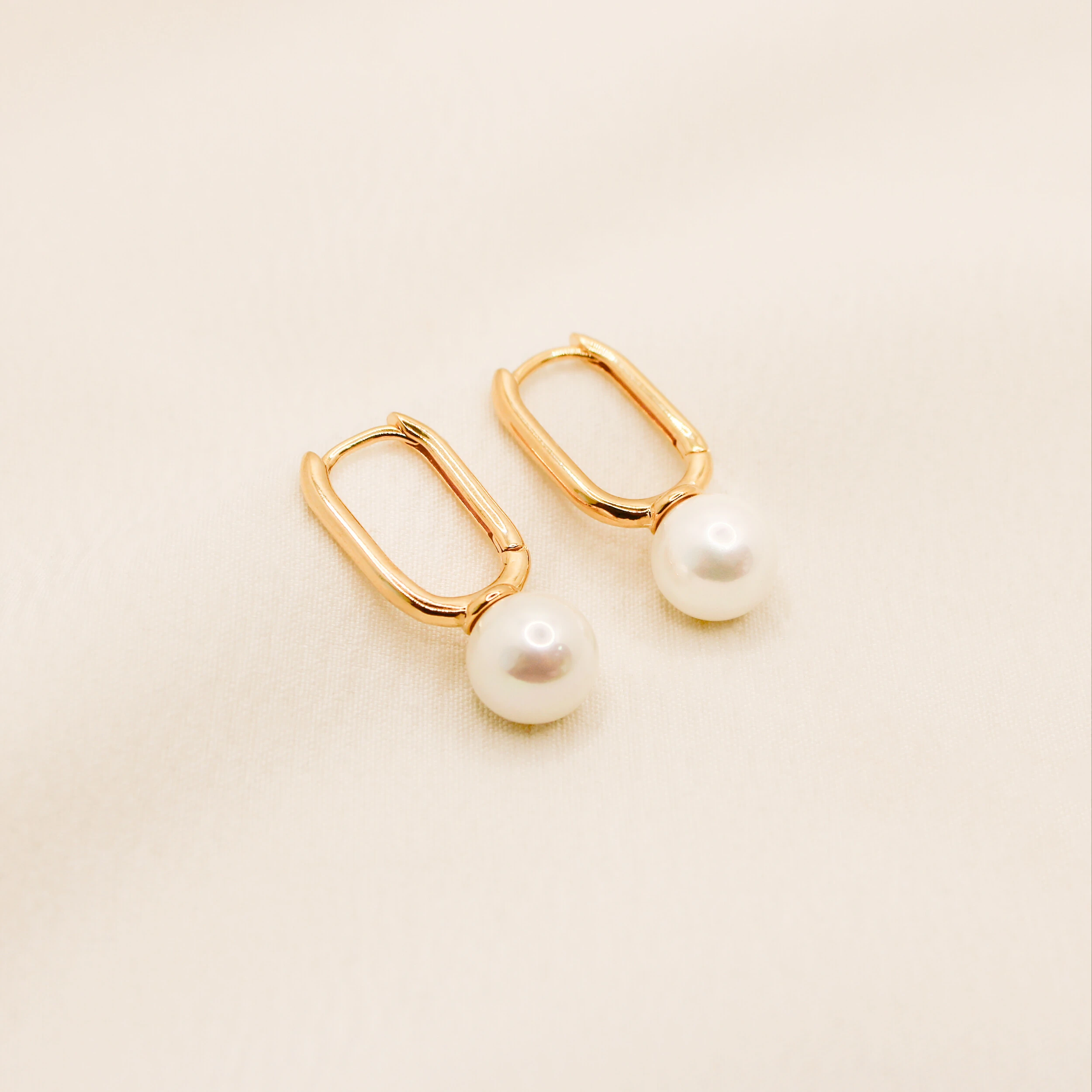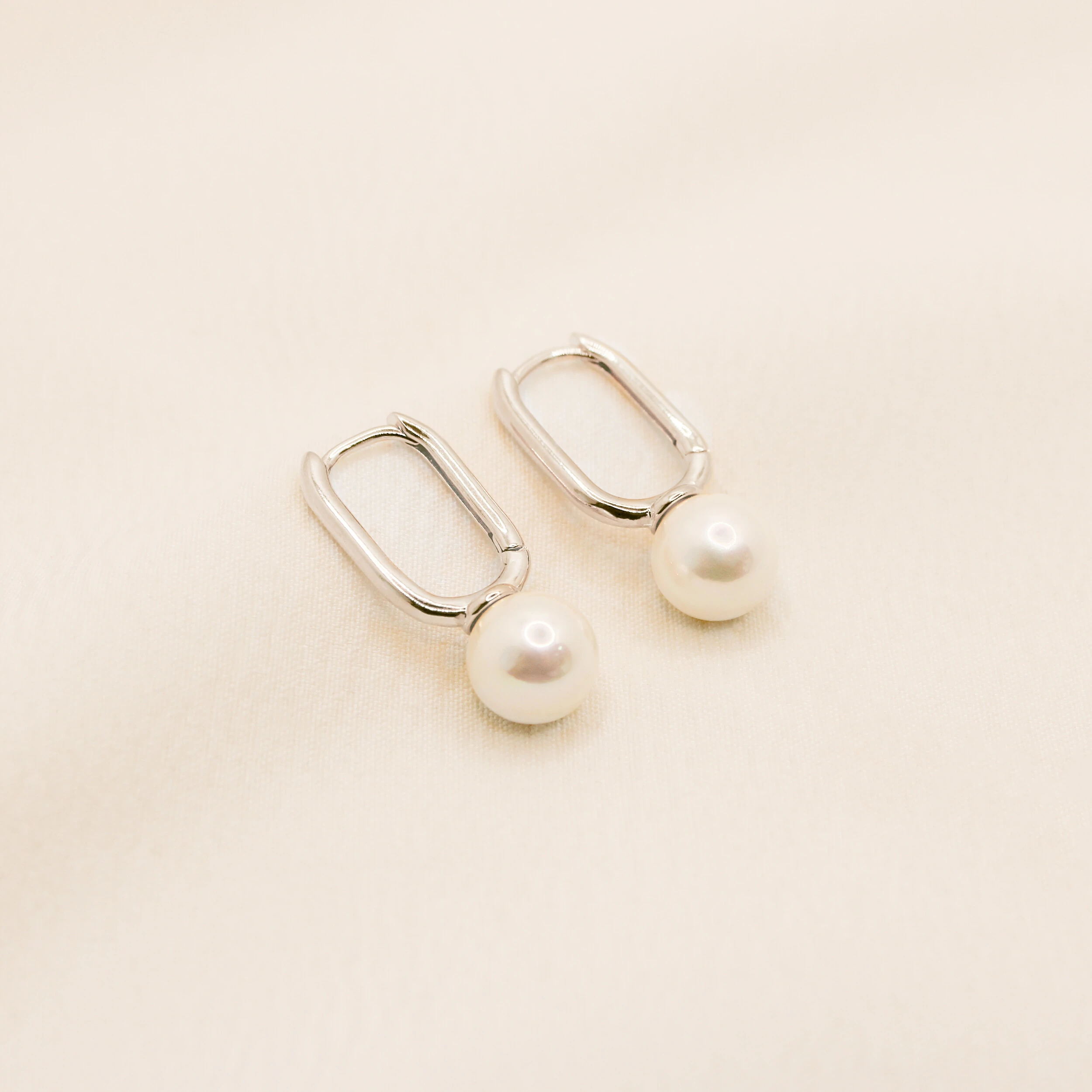 Brinco Soure Argola Retangular Lisa com Pérola