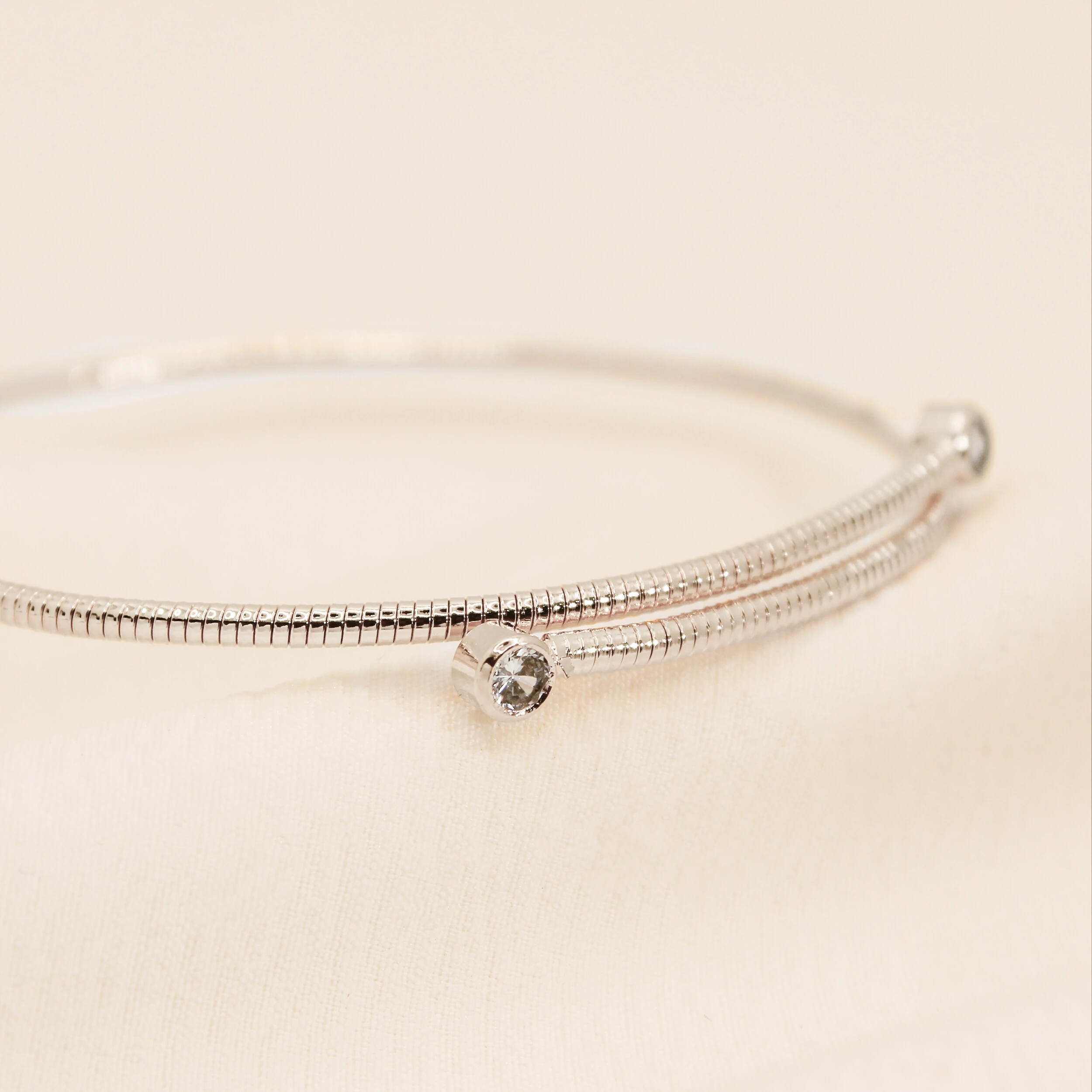 A Pulseira Kingston Mola com detalhe em Zircônia é o acessório ideal para quem busca elegância com praticidade. Seu design moderno em estrutura de mola oferece ajuste perfeito ao pulso, proporcionando conforto e estilo em qualquer ocasião.